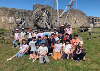 Les 47 élèves de CE et CM ont vécu une aventure inoubliable lors d’une expédition de trois jours en Vendée. Dès la première journée, ils ont plongé au cœur du Moyen Âge au château de Tiffauges : découverte des armes, démonstrations de combat, machines impressionnantes… Une véritable immersion dans l’univers des chevaliers.