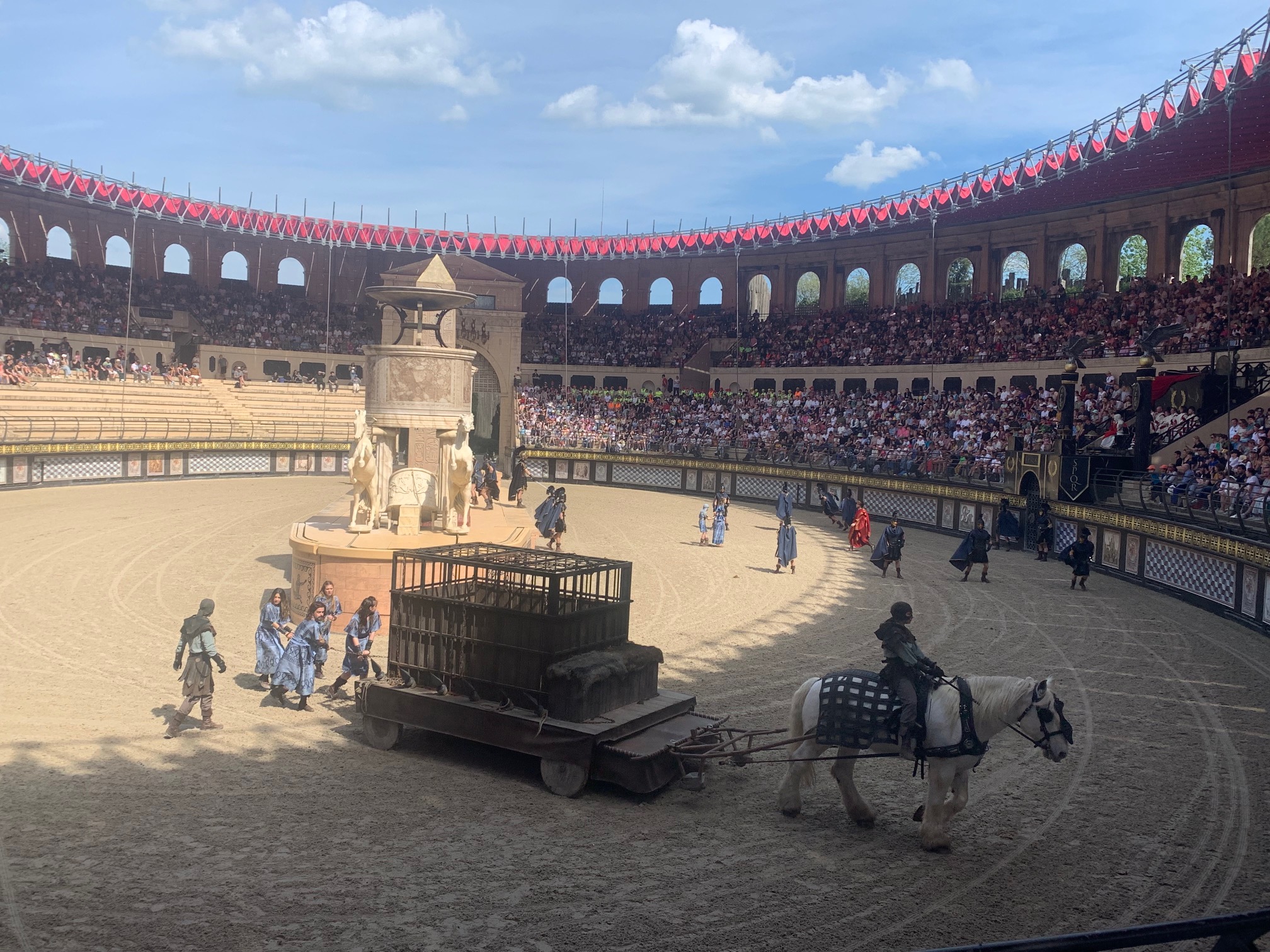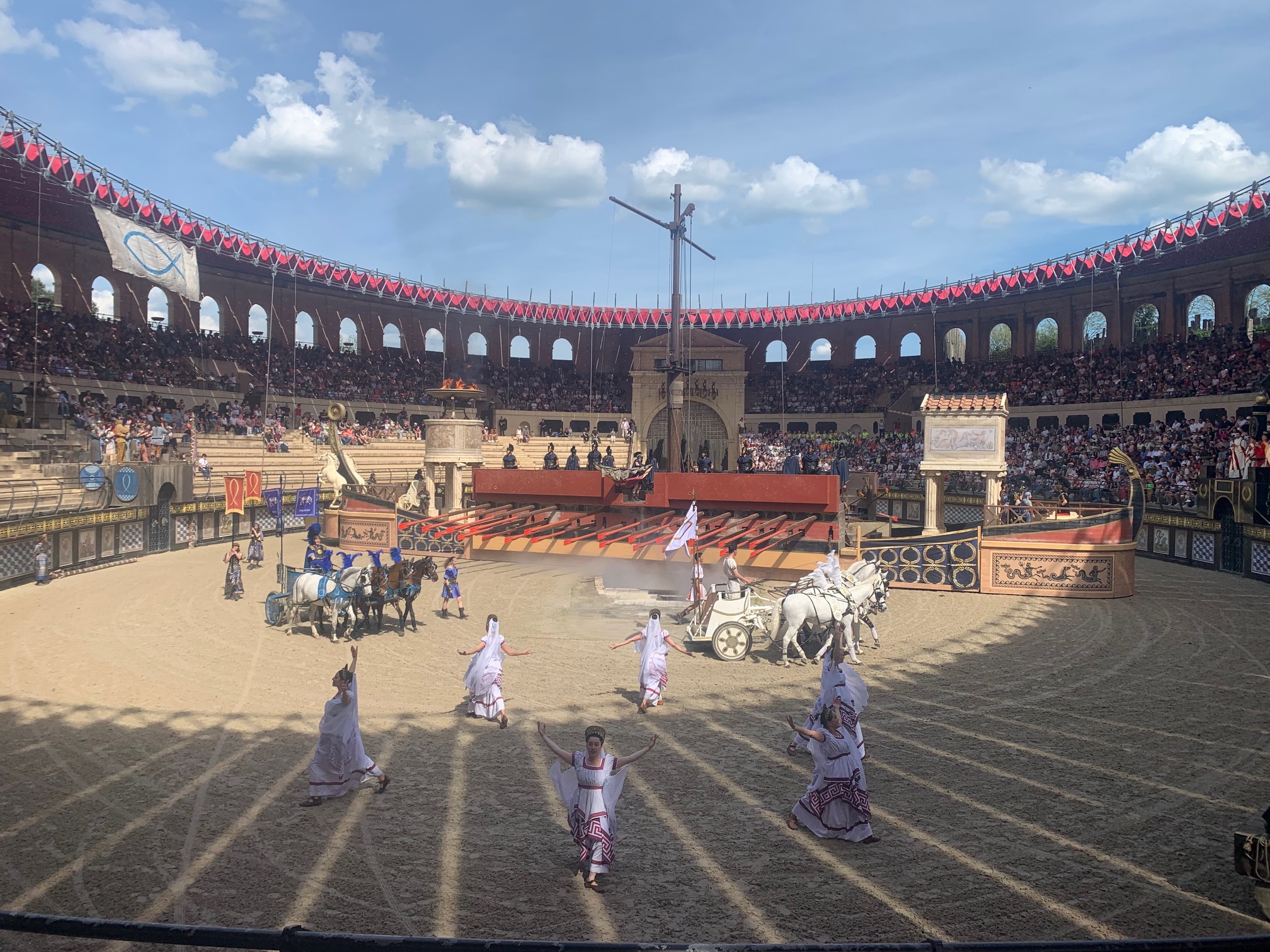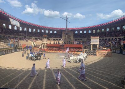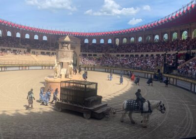 Nous avons adoré le spectacle le Signe du Triomphe, dans l’arène, où nous encouragions les Gaulois.